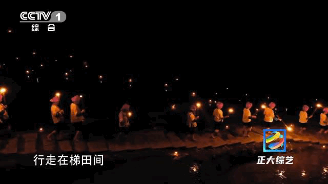 当夜幕降临,梯田中的上万盏夜灯纷纷点亮,仿佛闪烁的星光点缀其中,当地人称作夜龙脊,每逢节假日,夜龙脊还有另外一种打开方式——梯田火把。成规模的梯田火把源自于当地流传了上千年的梳秧节,它是每年芒种时节都会举办的节日,白天村民们集体插秧劳作,晚上阿姨们手持火把行走在梯田间,远远看去,犹如一条火龙在田间蜿蜒盘旋。