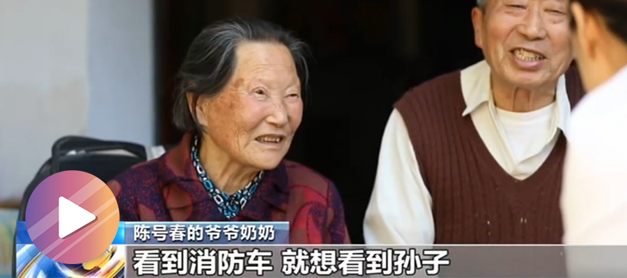 自从2014年,陈号春当上消防员,爷爷奶奶就习惯了闻声而动,只要听到街上传来消防车的警报声,老两口就会跑到小区门口张望。